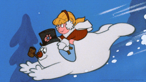 A lot of pop culture (and nonfiction) about snowscapes focuses on polar and near-polar regions. This film is different – while it appears to be set somewhere that is near the Arctic, it drops snow out of season. Animation has a fondness for snow (as I discuss in my post “Snow in Animated TV Christmas Specials: Imagined Joys of Winter”), and it can more easily depict snow than non-animation. In an animated film, the director doesn’t need to worry about vicissitudes of weather, about trying to get the look just right, avoid melting, avoid grey slush… Indeed, is there some kind of special relationship between animation and winter? Christmas specials make up a large percentage of animation shown on network television, and many of them feature wintry landscapes. They, too, often suggest, at least briefly, the dangers of winter – the Winter Warlock, the Bumble and the storm that almost grounds Santa in “Rudolph,” Winterbolt, and Karen facing dangers of cold in Frosty. But what they emphasize is its calm pleasantry, including the fun children have with snow, presenting snow scenes as objects of warm, nostalgic charm.