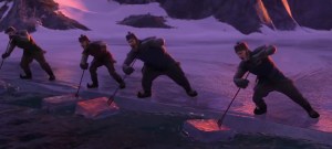 These are hearty men, working hard, who are aware of this duality. We also see a child, playing at ice harvesting. This establishes him, Kristoff, as someone who will learn these work habits and skills for making use of dangerous nature. The scene concludes with the northern lights, a vision of beauty often confined to areas which are cold.