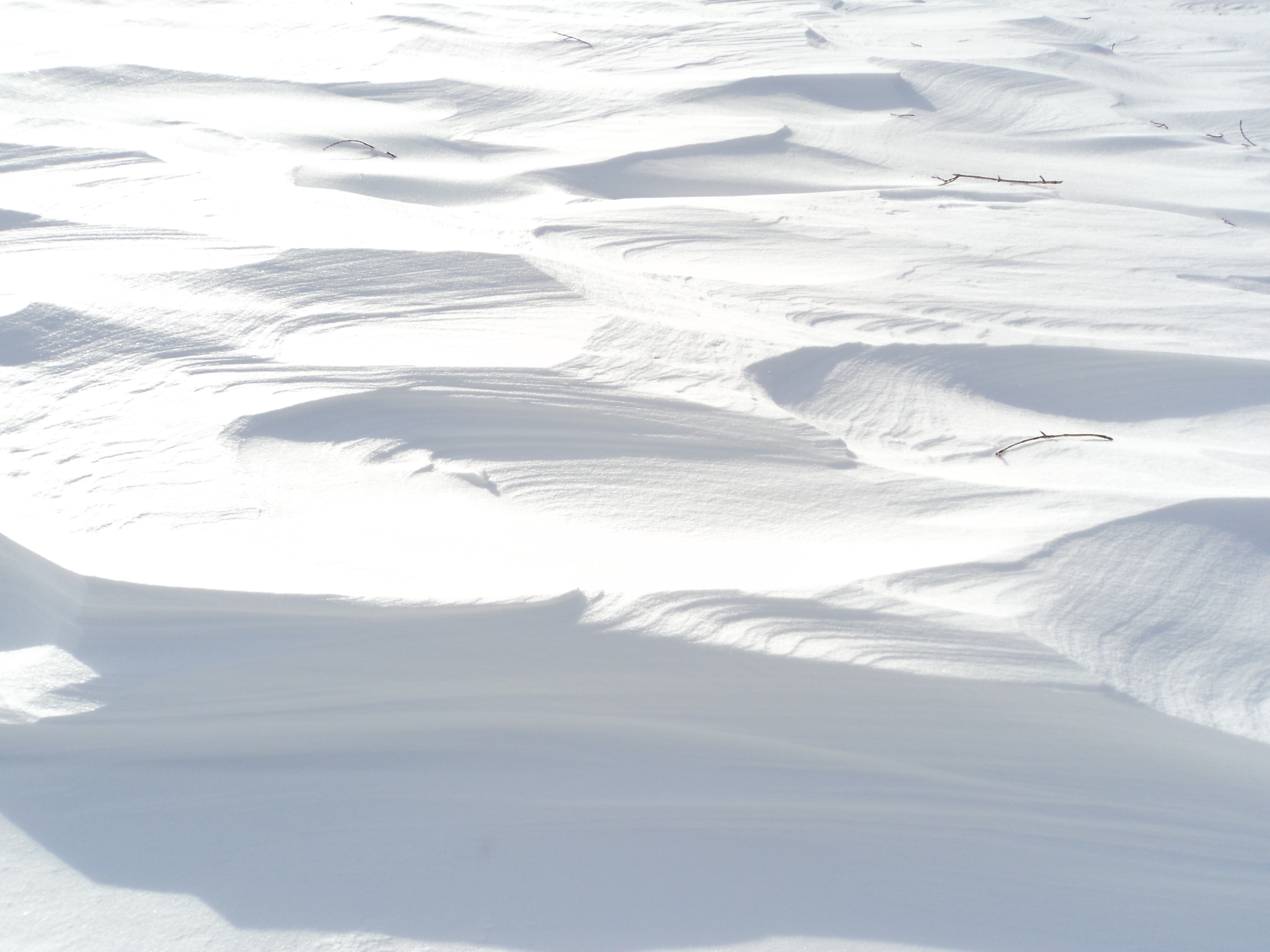 Sometimes, the top layer gets swept by wind. A slow flow, not really like anything else I normally see, except for flows of snowfall. A wind picks up, the snow seems to slither across top of landscape. Then the flow slows and halts. A new pattern is left behind.